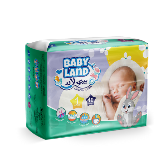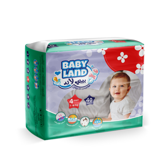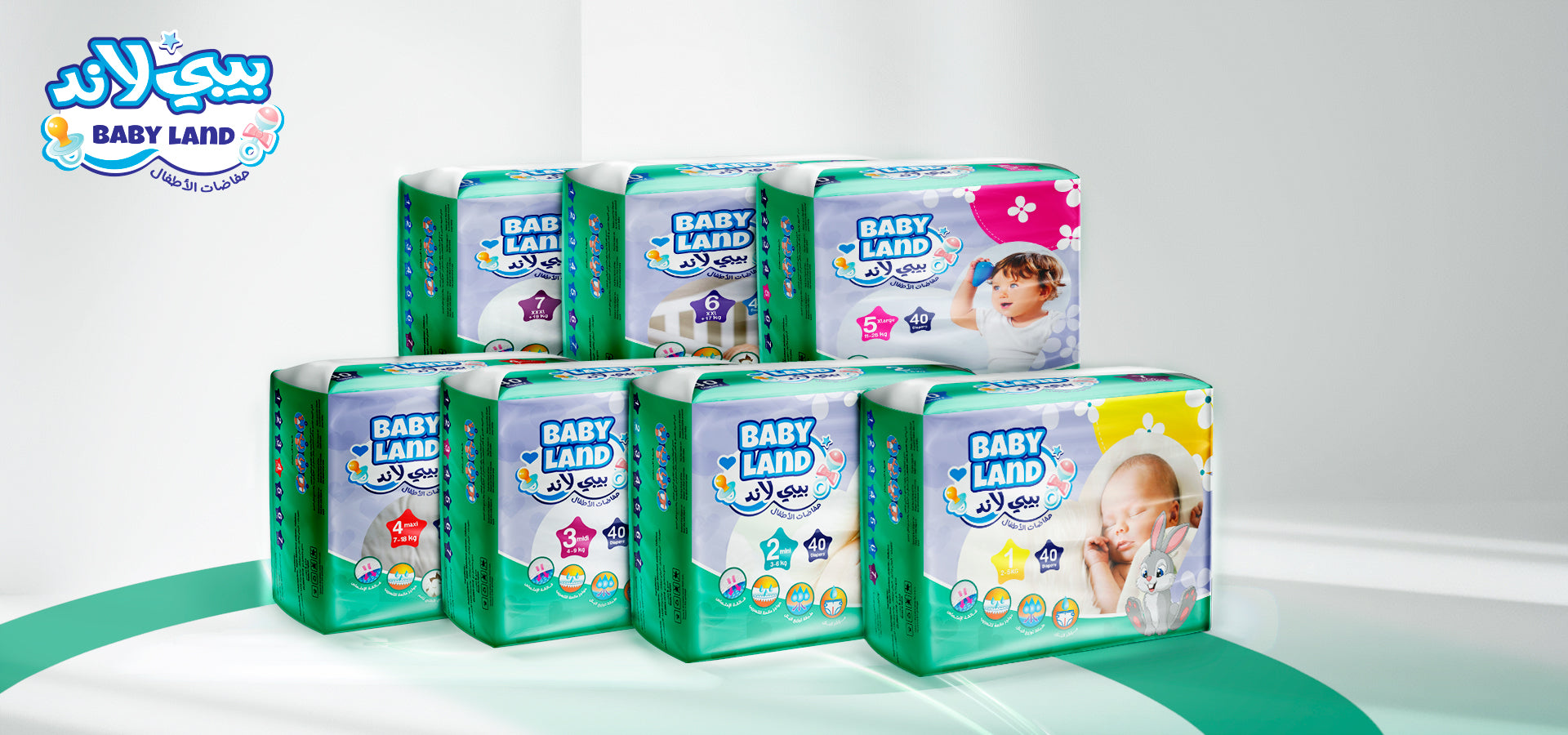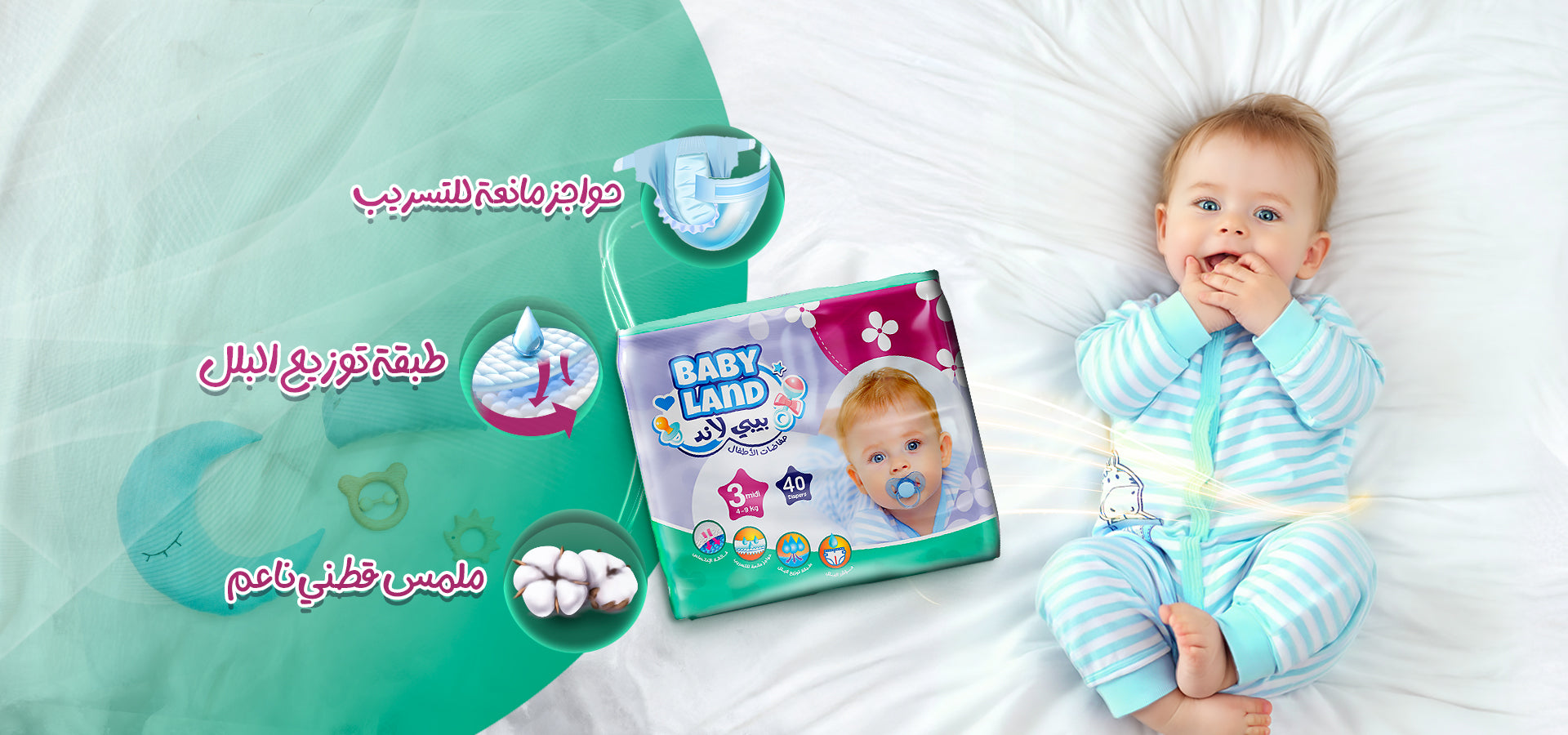 حفاضات بيبي لاند تحتوي على طبقة داخلية فائقة الامتصاص، تمتص البلل بسرعة وتساعد في الحفاظ على بشرة الطفل جافة ومرتاحة لأطول فترة ممكنة
