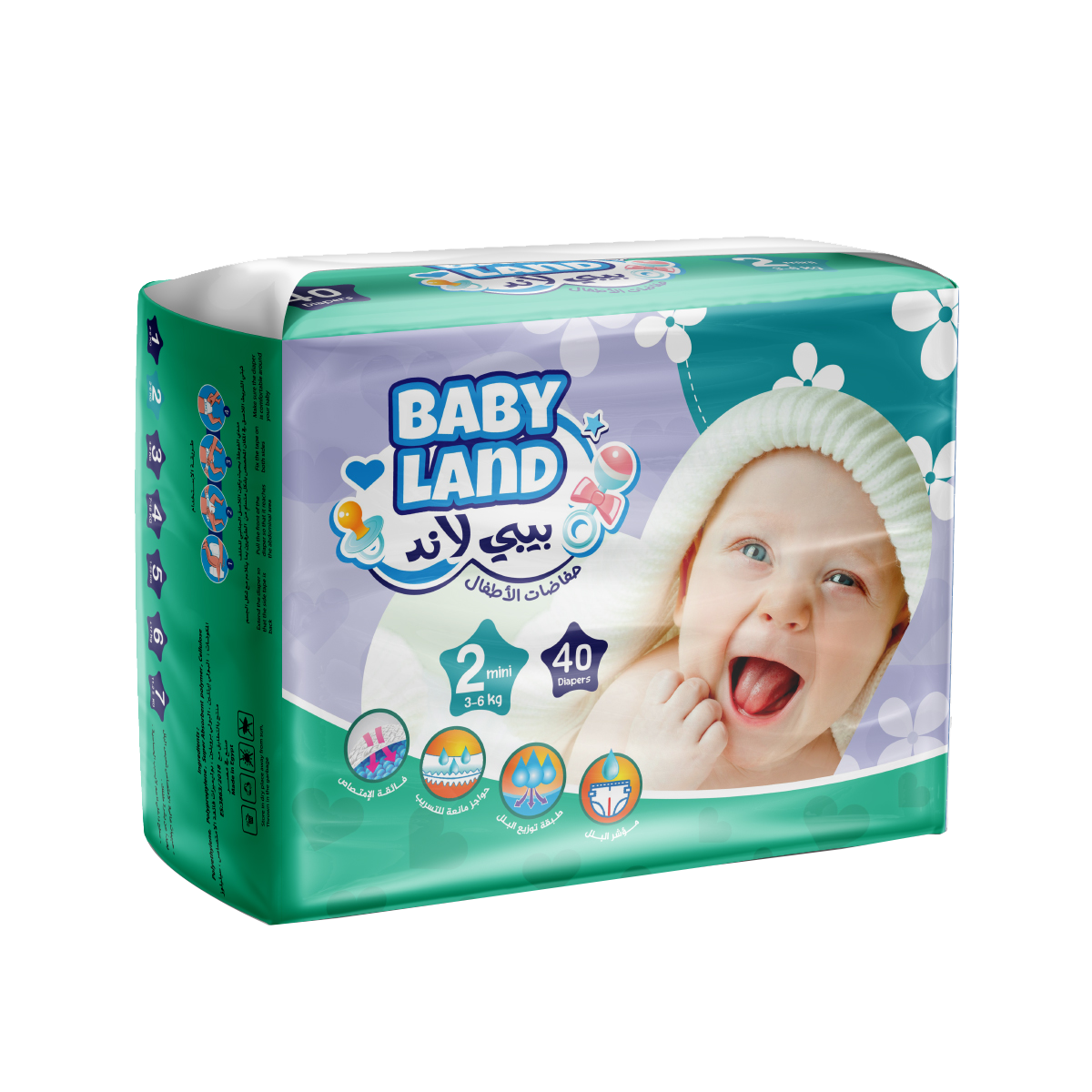 - حفاضات بيبي لاند بملمس قطني ناعم لحماية طفلك من الالتهابات.