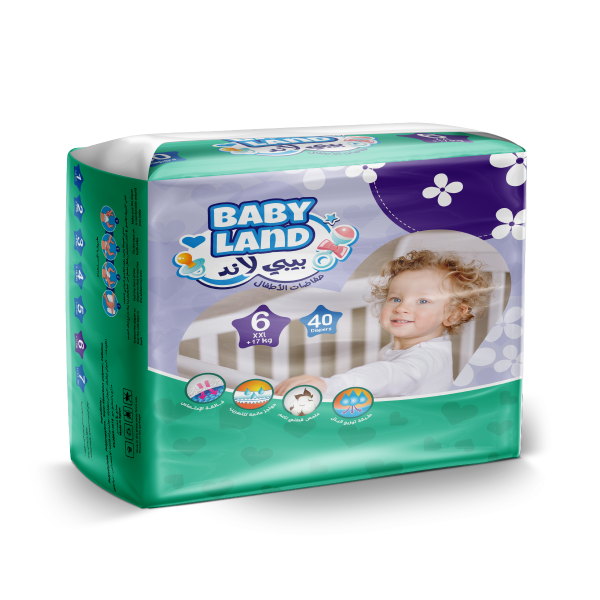 - حفاضات بيبي لاند بملمس قطني ناعم لحماية طفلك من الالتهابات.